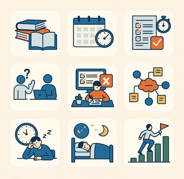 Solution: Develop a balanced, realistic study plan. Allocate specific times for each subject, focusing more on weaker areas while regularly revising stronger ones.